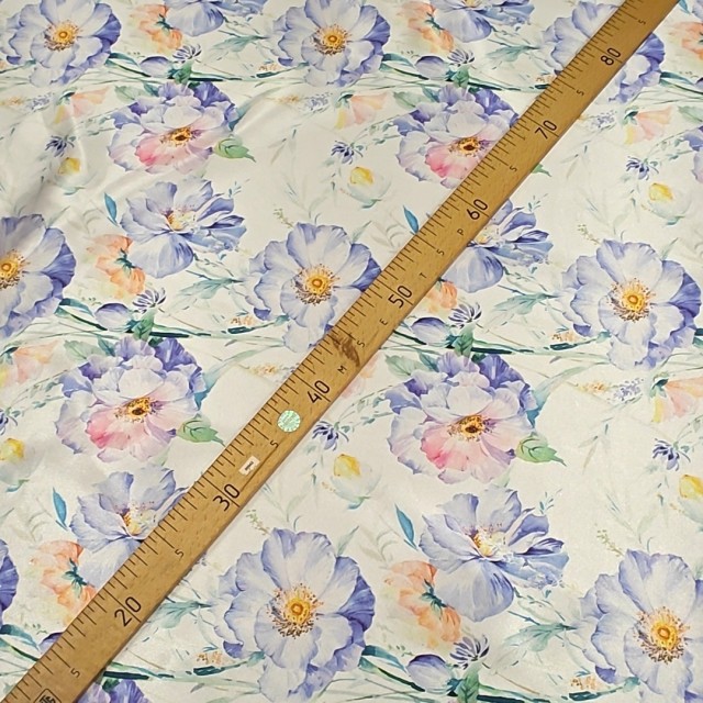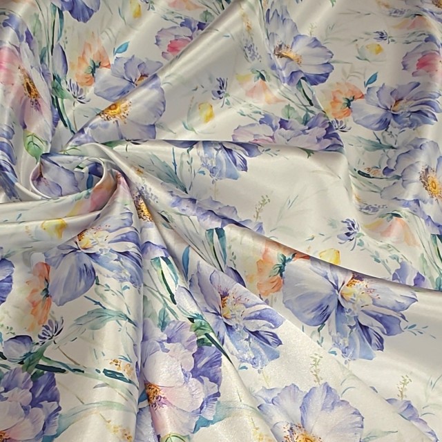 - Атлас с блеском Кристалл с акварельными цветами для пошива платьев