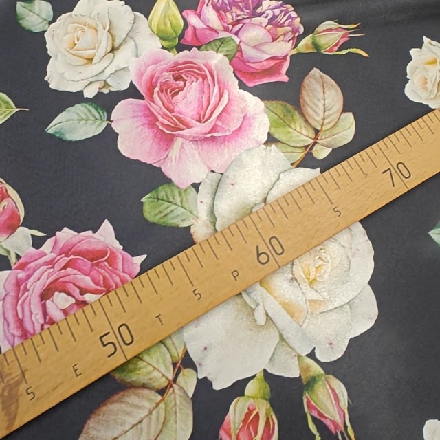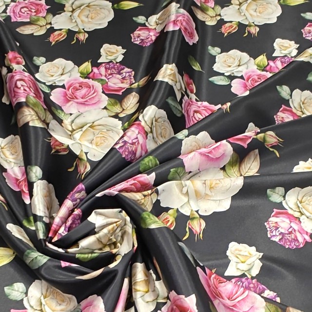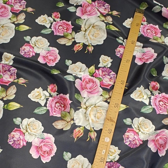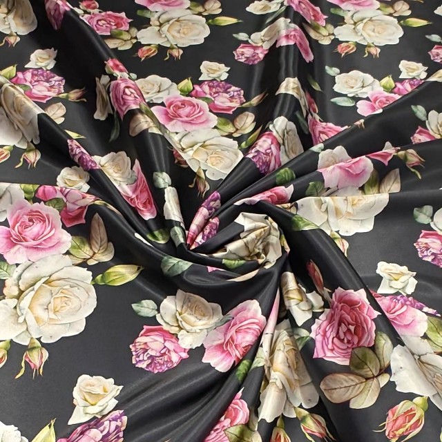 • Атлас с блеском Кристалл с красивыми розами для пошива платьев