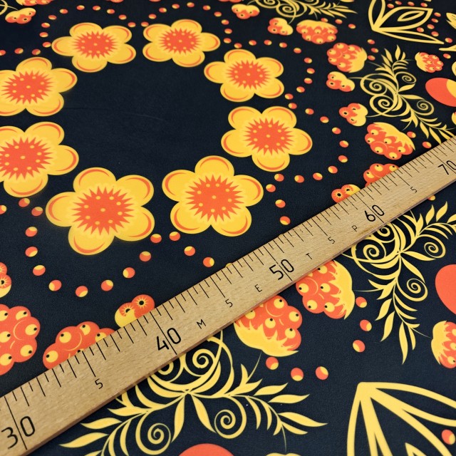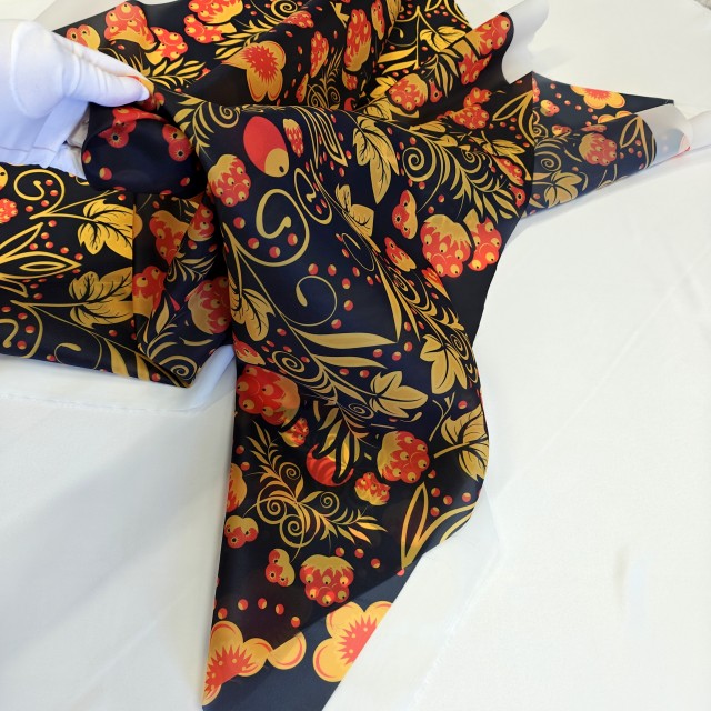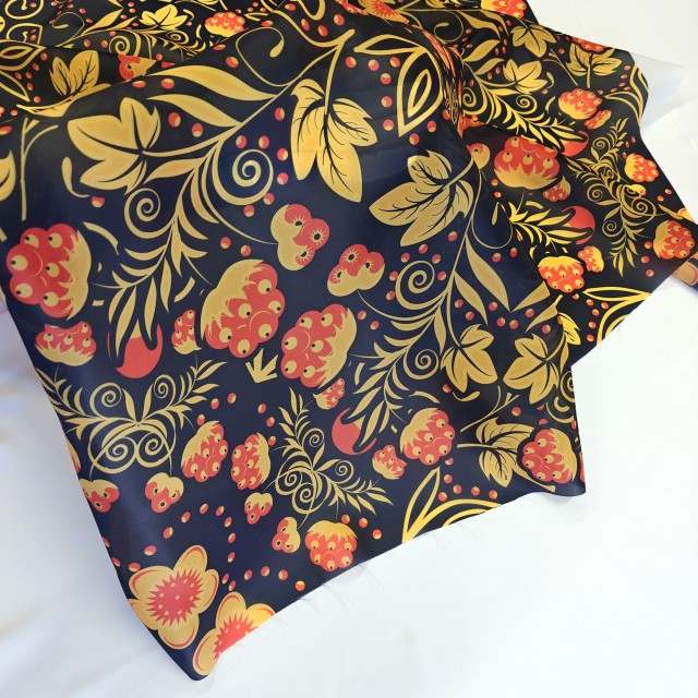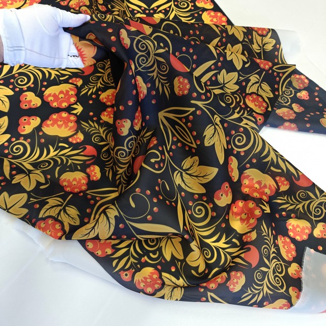 - Органза матовая Виола с узором Хохлома для пошива модных нарядных платьев - детских, выпускных и вечерних.